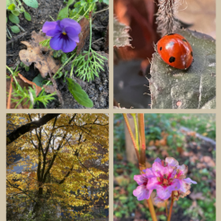 Der Herbst hat auch auf unserem Schulhof unübersehbar Einzug gehalten. Trotzdem gibt es auf unserem naturnahen Gelände viel zu entdecken. Aus den Beeten und Sträuchern leuchten Blüten und Käfer hervor…